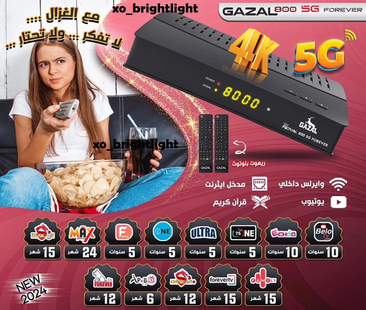 Source : www.youtube.comGazal Forever 800 5G 4K 2024 Satellite Receiver TV Box 10Year
