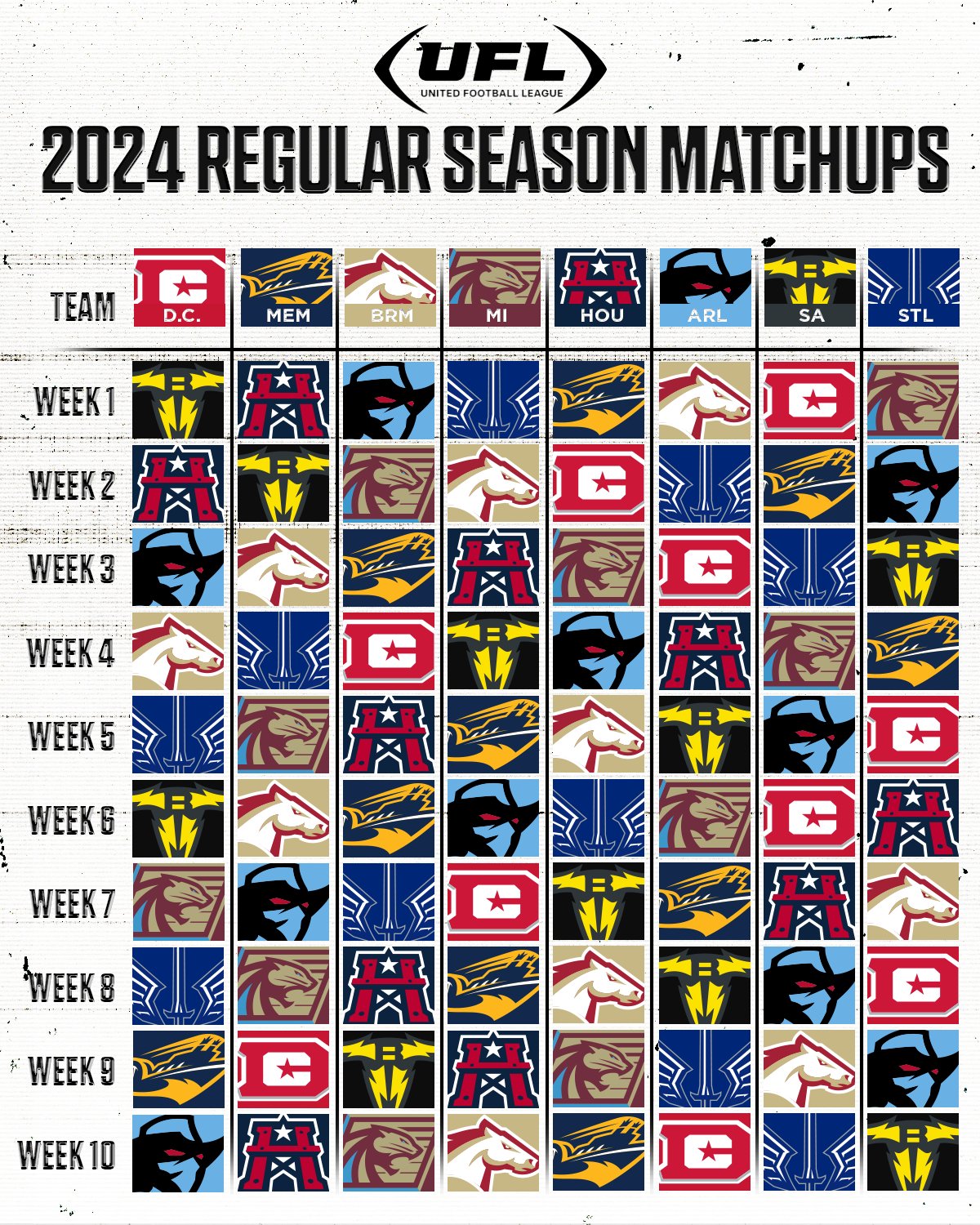 Source : www.libertyperry.orgKevin Seifert on X: “The UFL’s regular season schedule: https://t